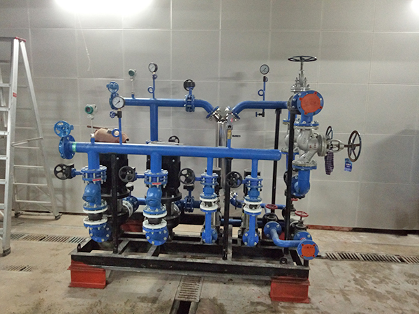 换热机组设备和管路的布置,外形美观、管道接口流畅、压力损失小、检修方便、便于操作和观测;板式换热器的两侧留有维修空间;一次侧介质为蒸汽时,其介质在管道内的流速小于50m/s一次侧介质为热水时,其介质在管道内的流速小于2.5m/s;二次侧介质在管道内的流速小于3m/s。换热机组管路及设备的压力降一次侧不超过100kpa,二次侧不超过120kPa。
