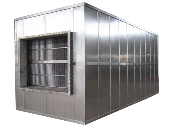 在钢结构的固定框架中,将每片传热板成90°逐一重合而成。烟气从水平方向通过波纹板,空气从从垂直方向通过波纹板。